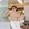 Made of cotton, Zipper at the back, Metal zipper, No padding, Non-adjustable strap, Fixed pearls decorate design