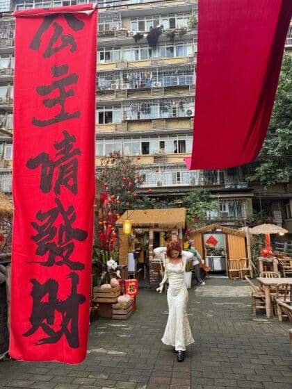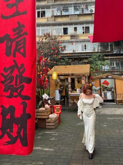 Made of Satin, invisible zipper at back, adjustable shoulder strap, features removable floral patch, drapery design at side