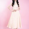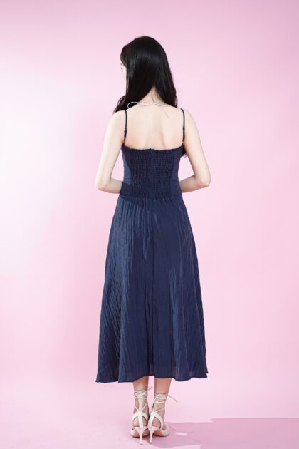 Made of polyester fabric, bust padding and adjustable shoulder strap provided, elastic smocked panel and zipper opening at back, lining inside