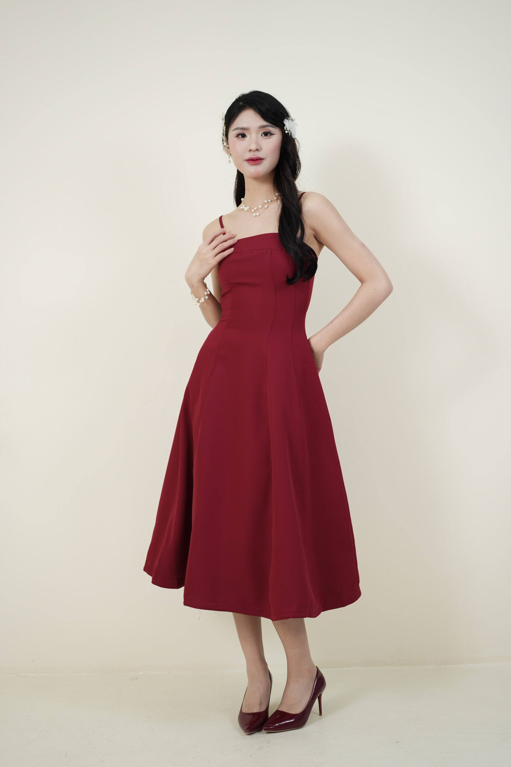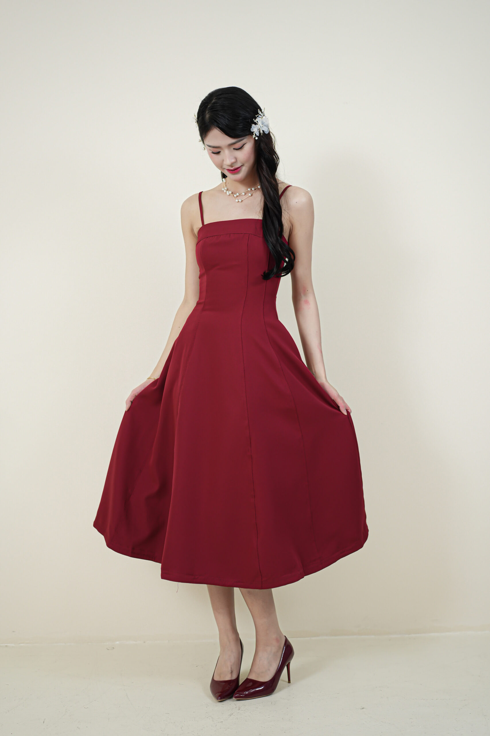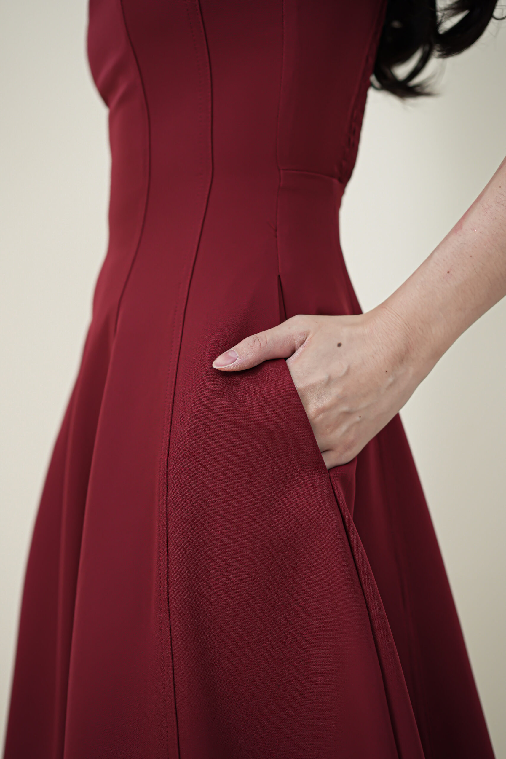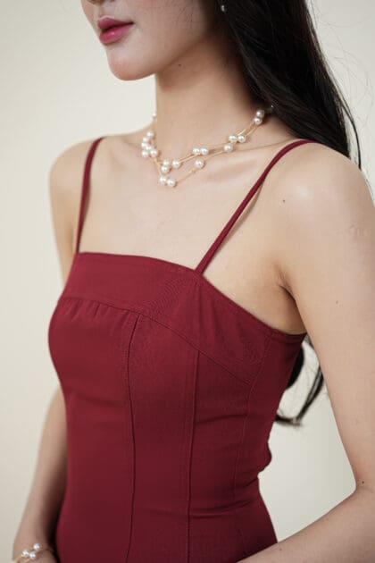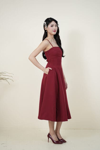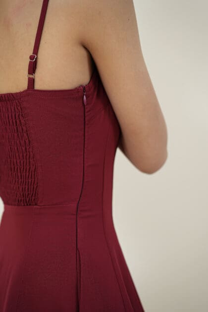 Made of Cotton, Hidden zipper at the side, No padding, Adjustable strap, Elastic at back stretchable, Hidden side pocket at both side, Flat felled seam design on dress, Lining inside