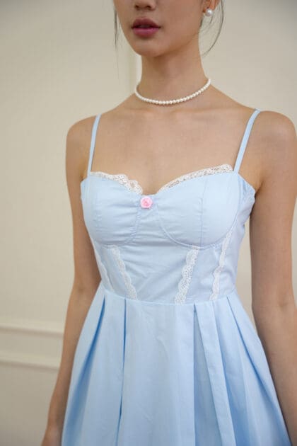 Made of cotton, Non-stretchable, Invisible zip at the back, Padded, Adjustable strap, Border lace design, Ribbon rose design between bust, Invisible box pleat design, Breathable lining inside