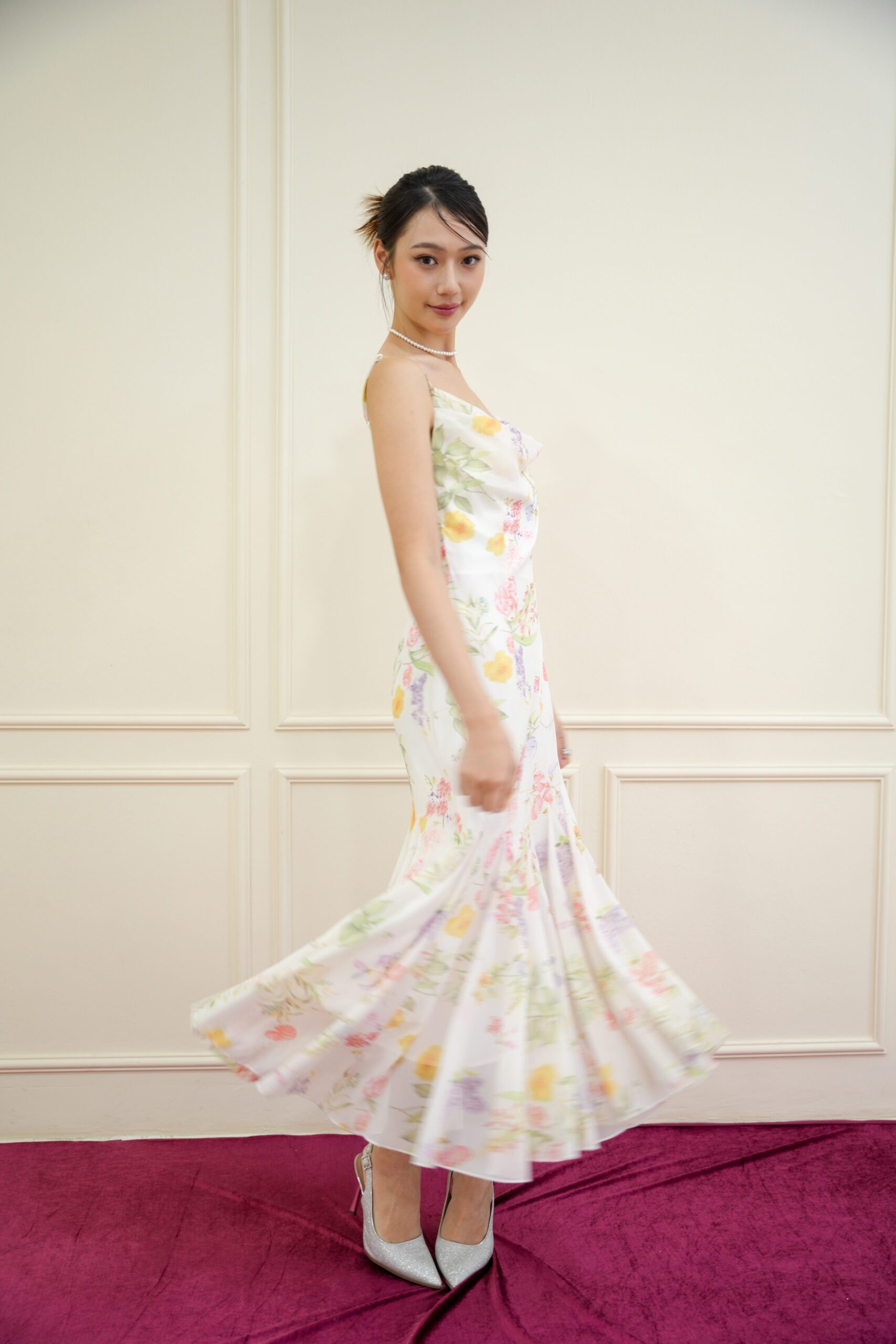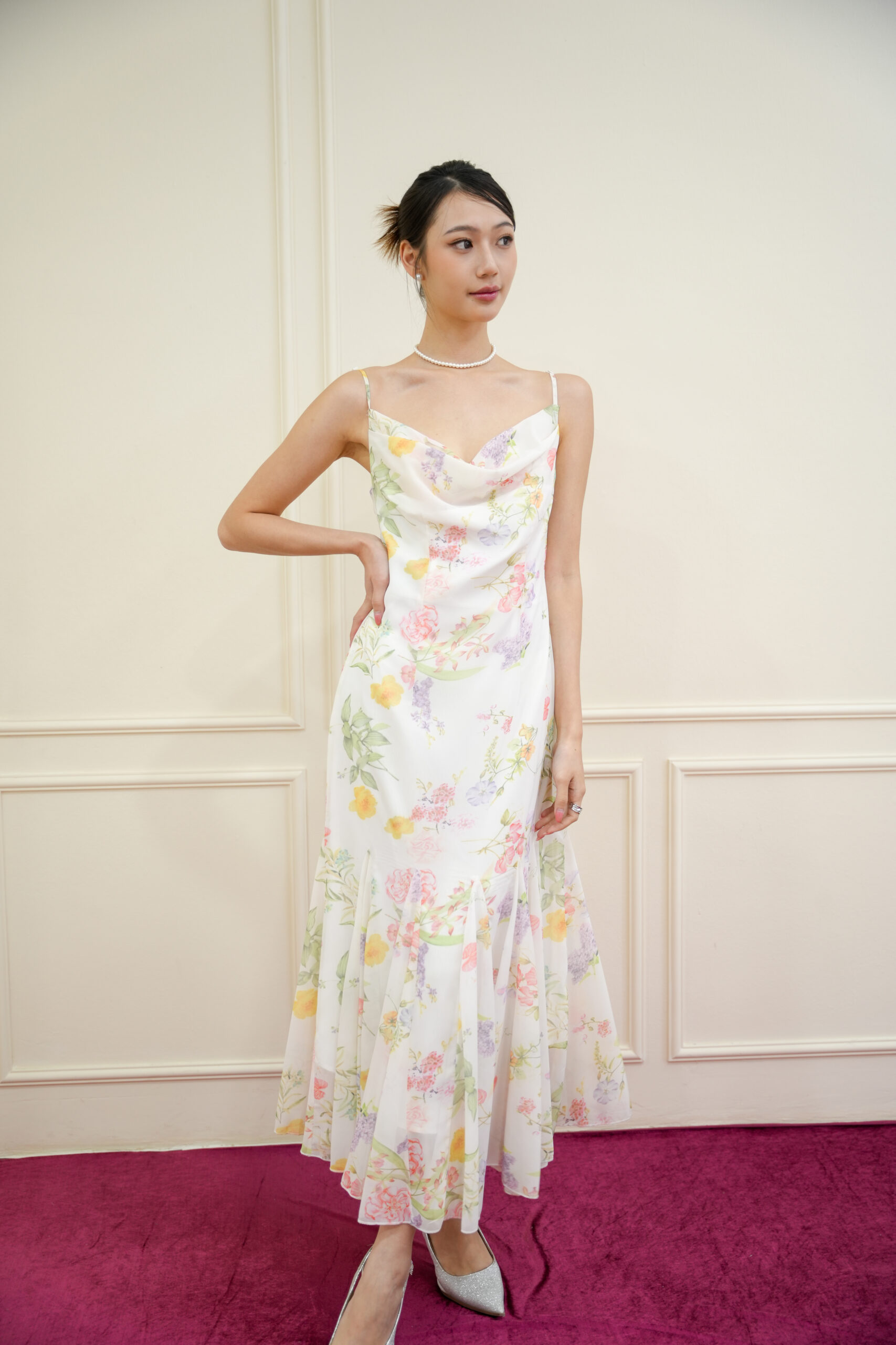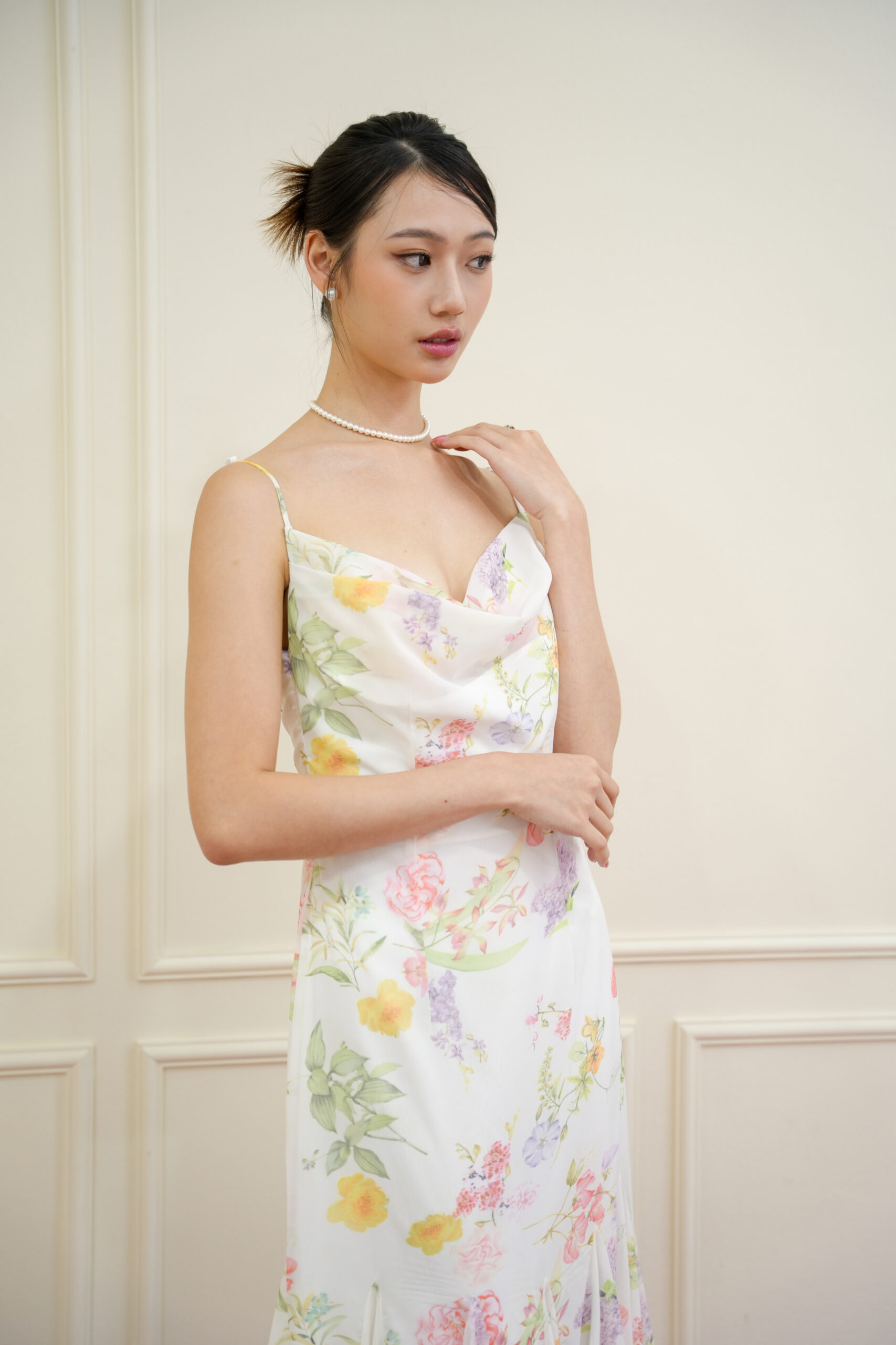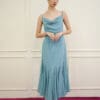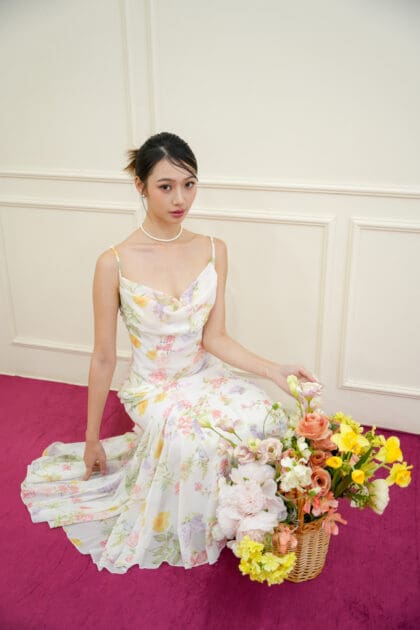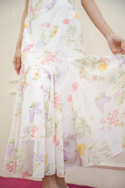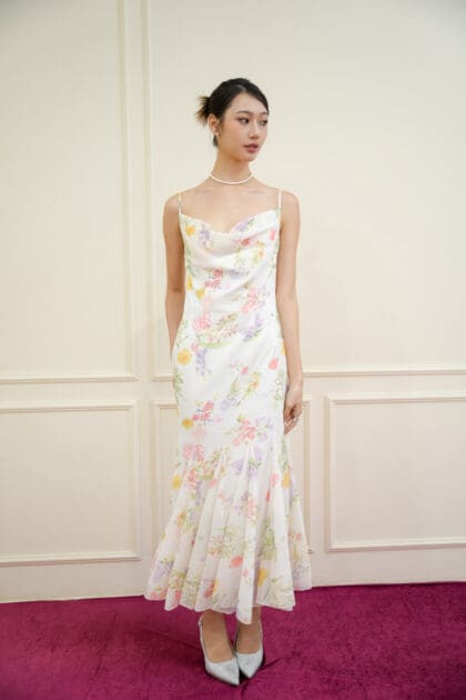 Made of organza, Non-stretchable, Adjustable strap, No padding, Cowl neckline design, Godet bottom design, Breathable lining inside