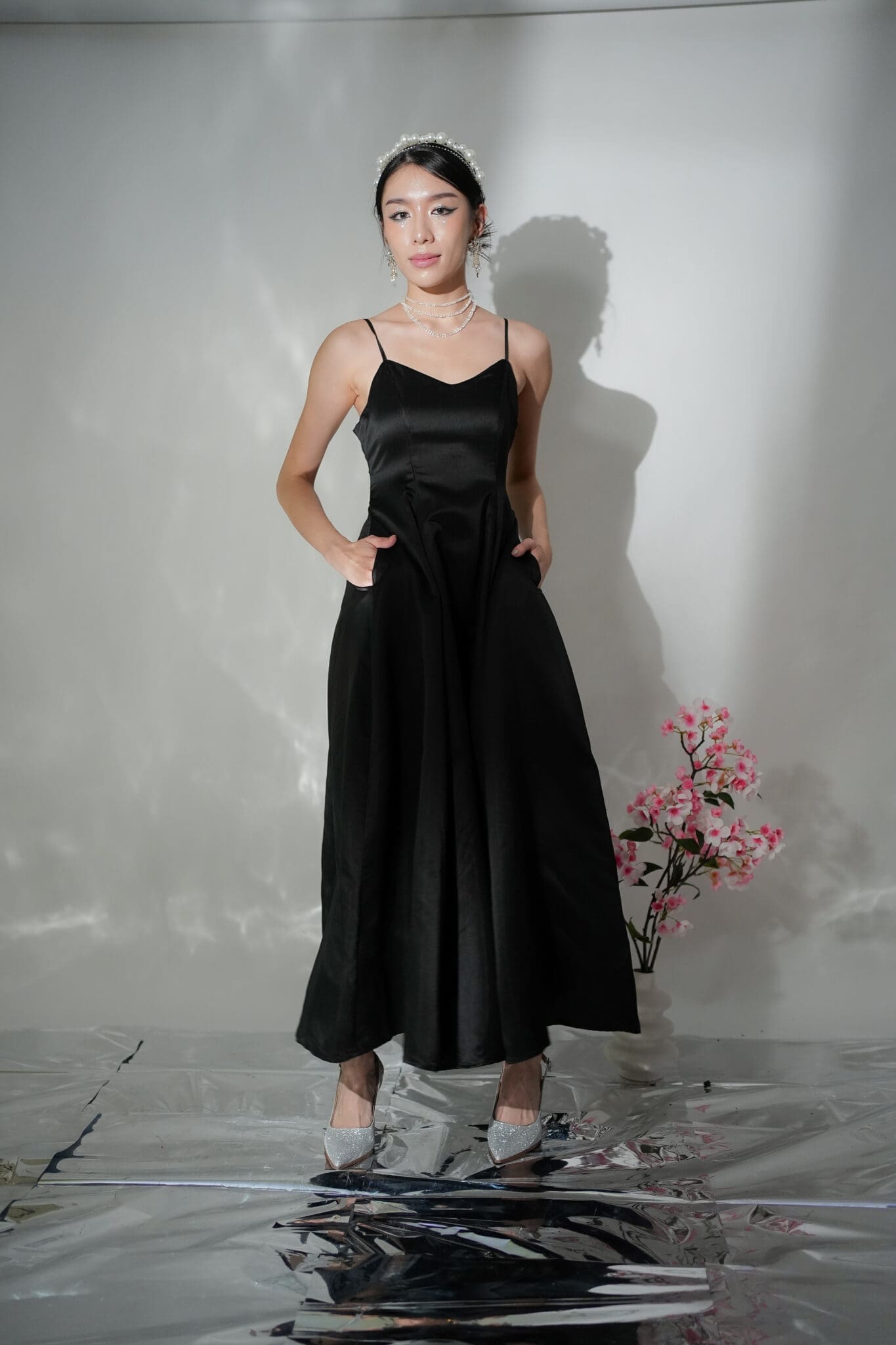 Made of satin, Non-Stretchable, Hidden pocket at side, Invisible zipper at the back, Adjustable strap, No padding, Lining inside