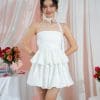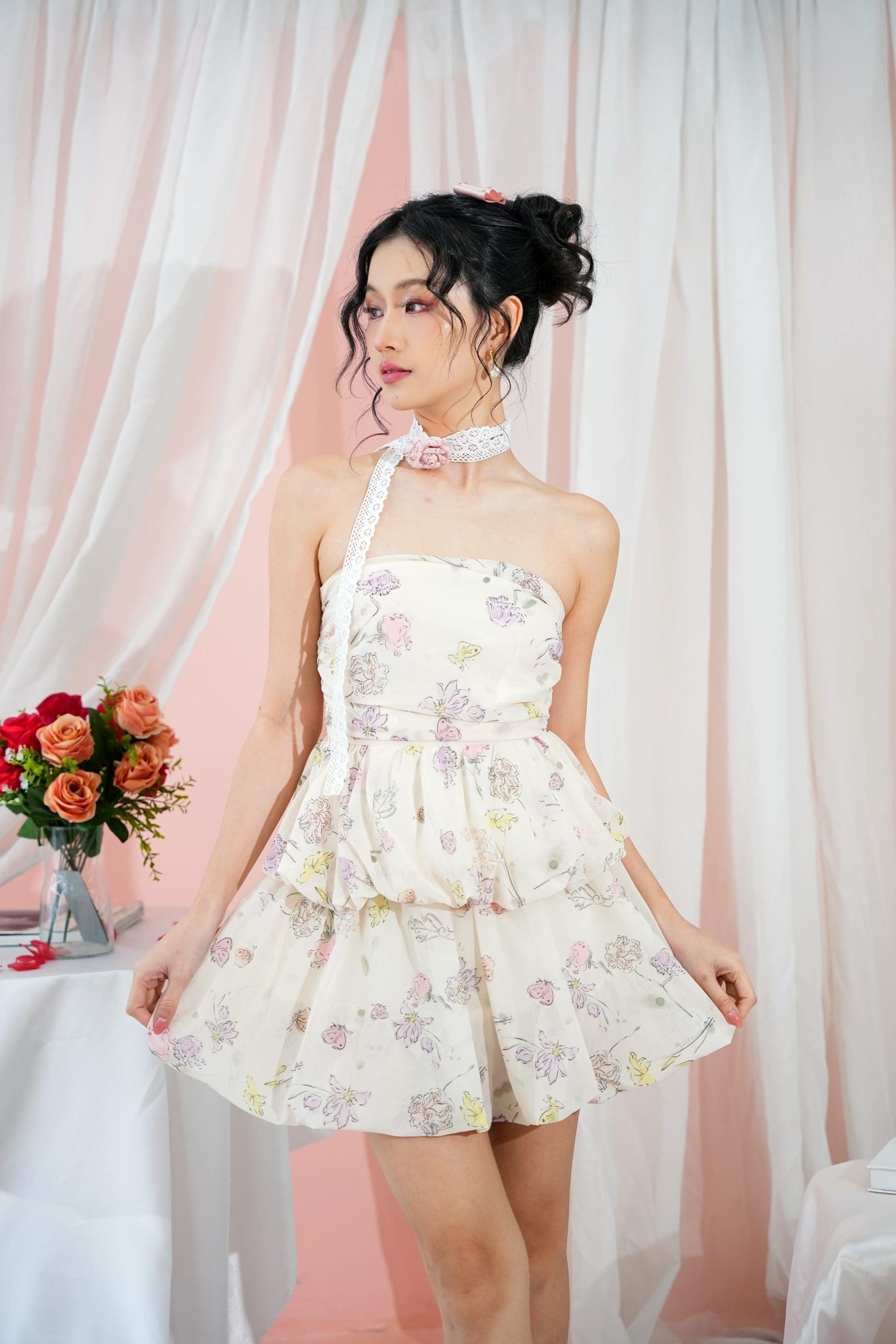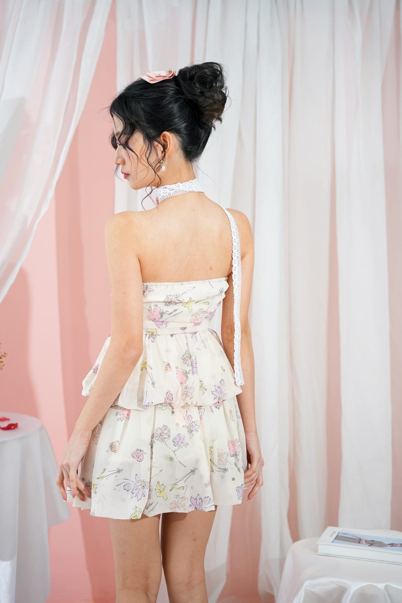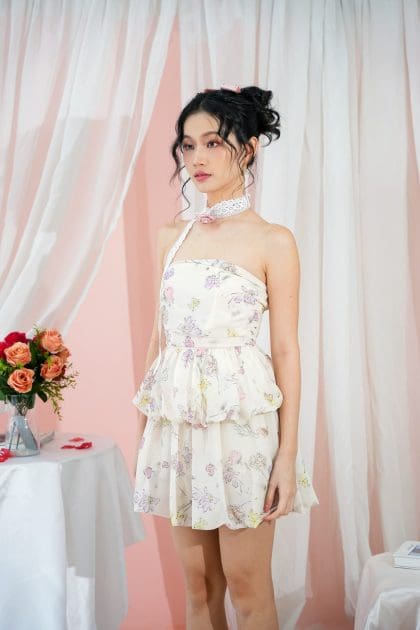 Plain color made of satin, Print made of chiffon, Hidden zipper at the side, Elastic stretchable at back, No padding, Gathers and bubble design, Breathable lining inside