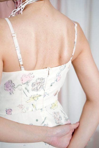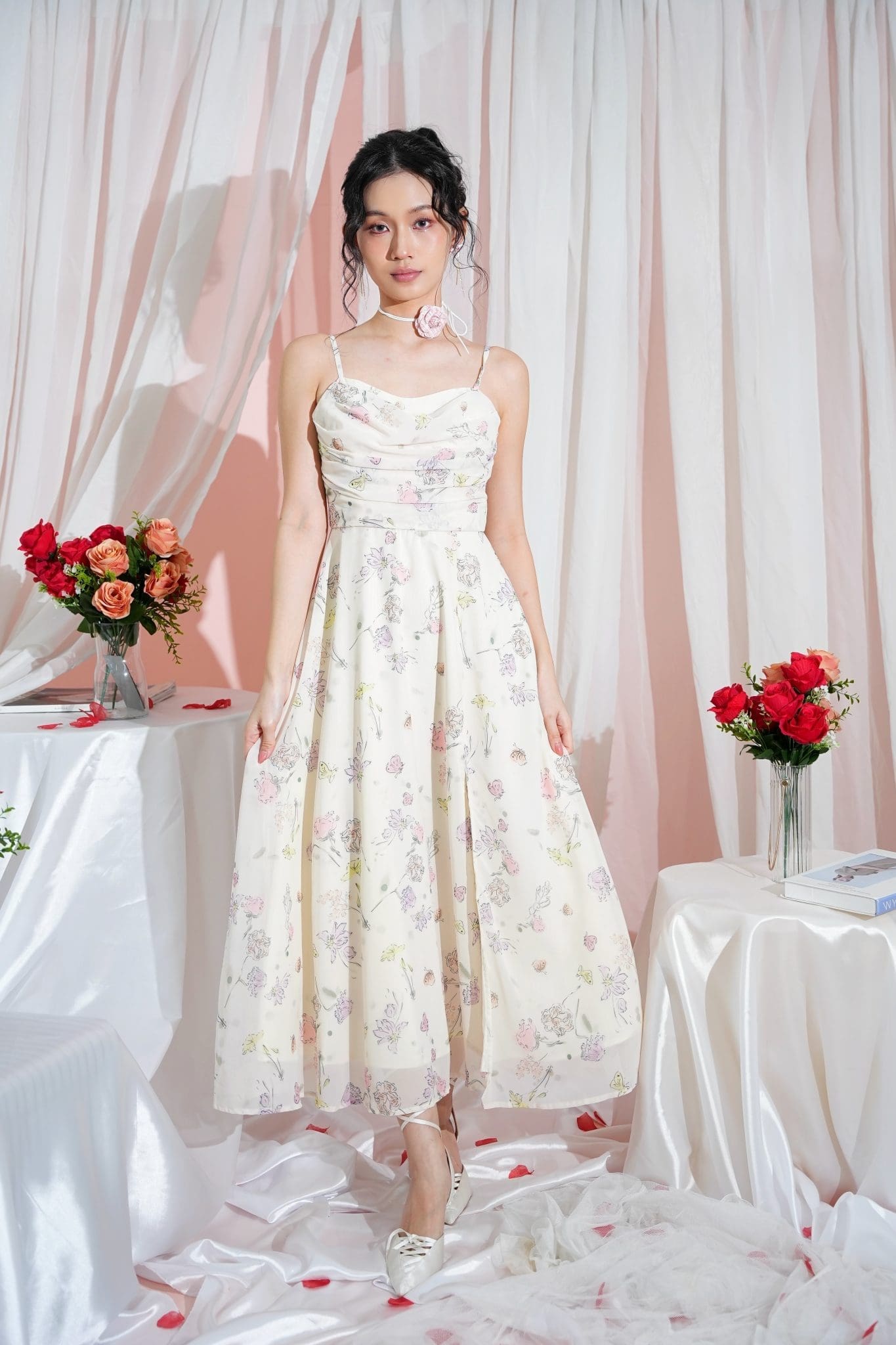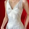 Made of chiffon, Hidden zipper at the back, Adjustable strap, Padded, Breathable lining inside, Opening slit on one side, Draped design at upper front area