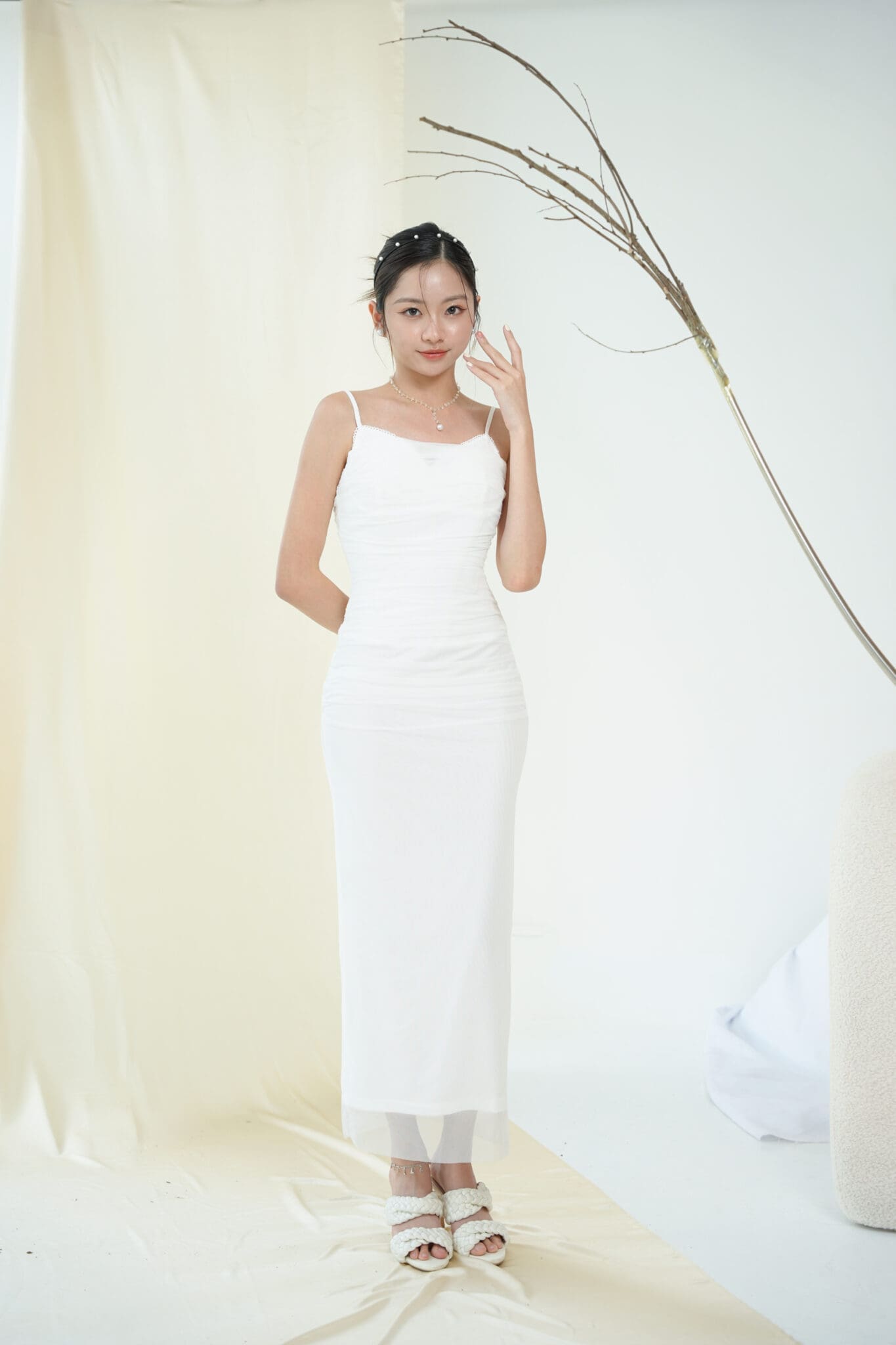 Made of Satin and organza fabric, Ruched tulle design, Adjustable Strap, Padded Bra Available, Invisible Zipper on center back & Stretchable