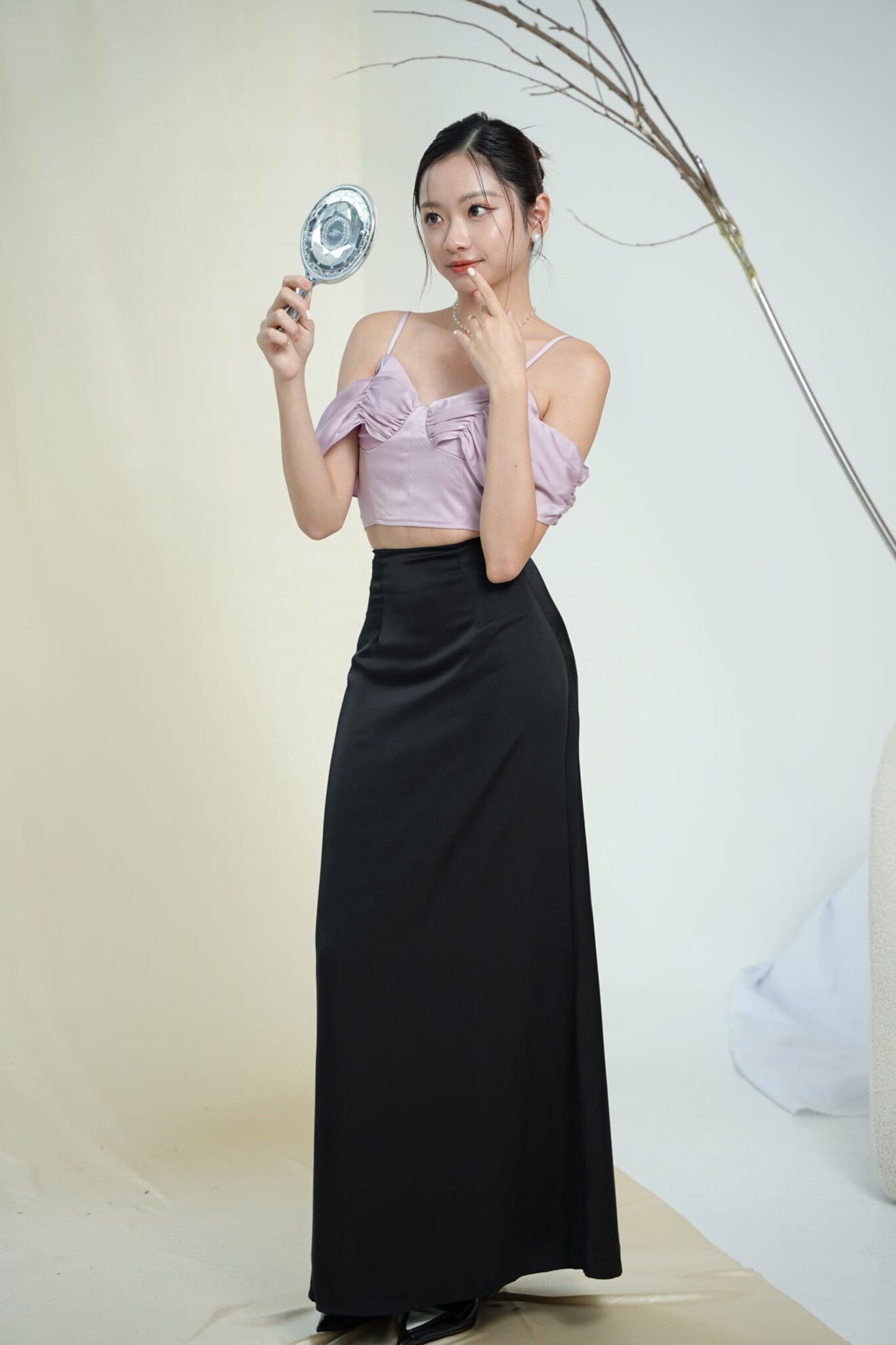 Made of satin fabric, invisible Zipper on center back, Non-Pocket.