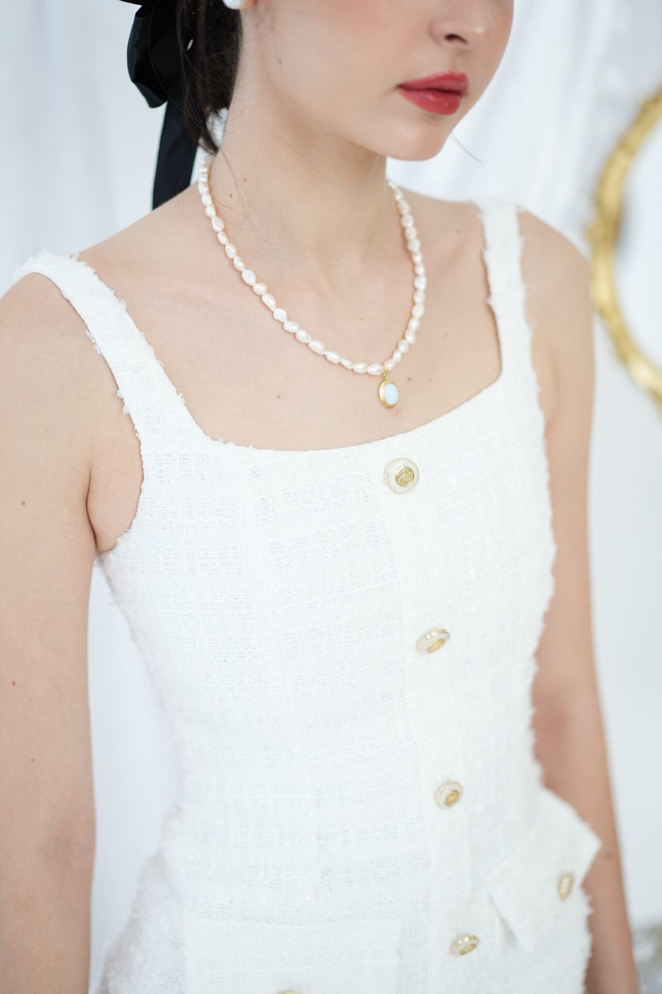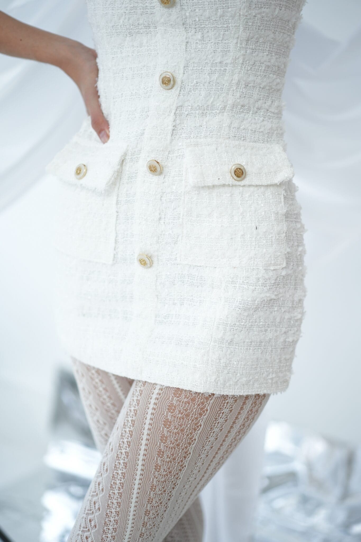 Made of tweed, Non-Stretchable, Two flap patch pocket at front, Button decoration at front, No Padding, Metal zipper, zipper at the back, Lining inside