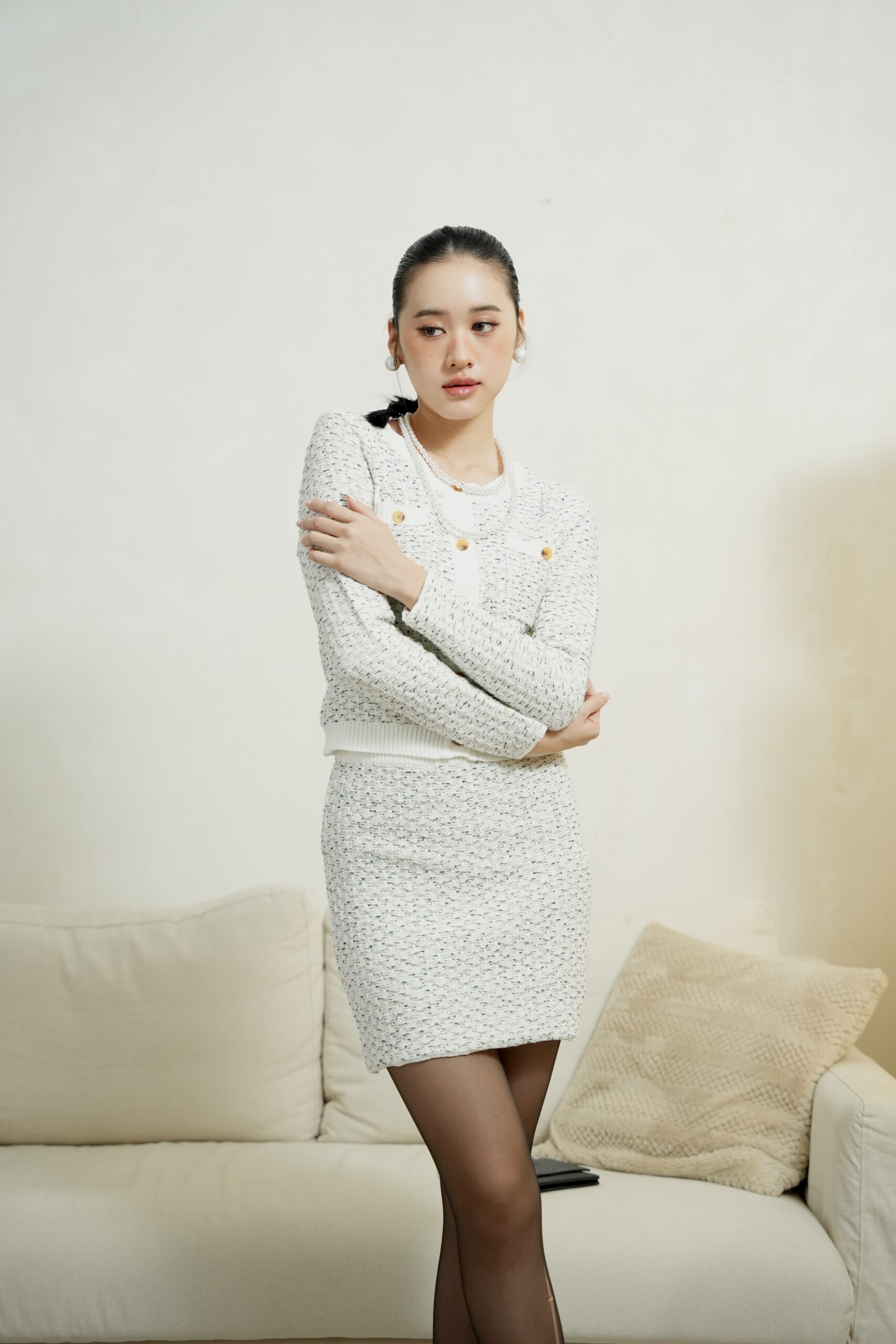 Made of knit fabric, stretchable waistband
