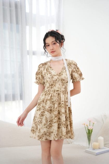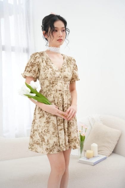 Made of cotton, Hidden zipper at the back, No padding, Flare and elastic sleeve design, Back tie design, Gathers design at bust area, Fake fishbone design at front, Elastic and breathable lining inside
