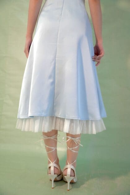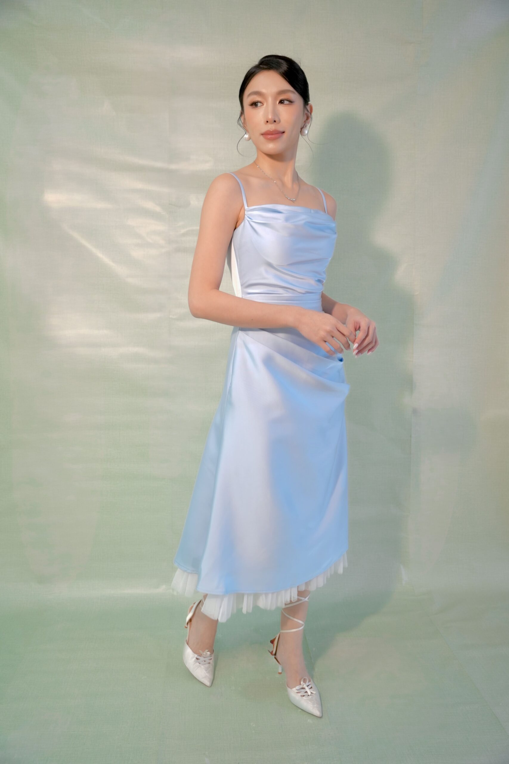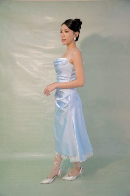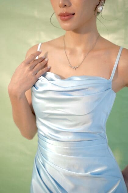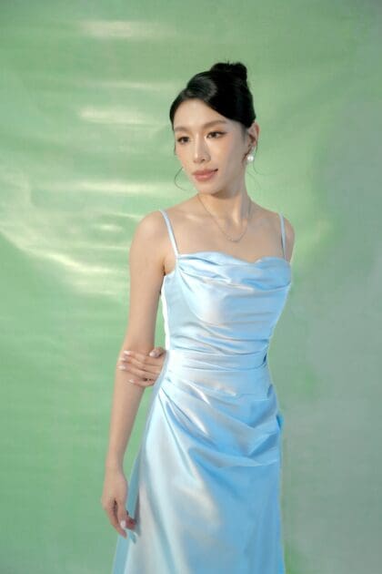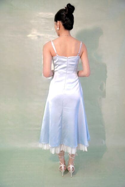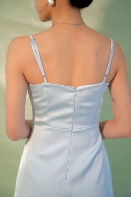Made of satin fabric, invisible zipper at centre back, includes inner lining , includes adjustable shoulder straps