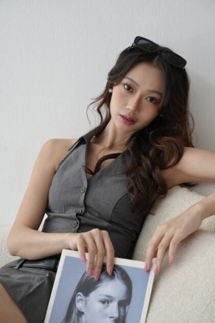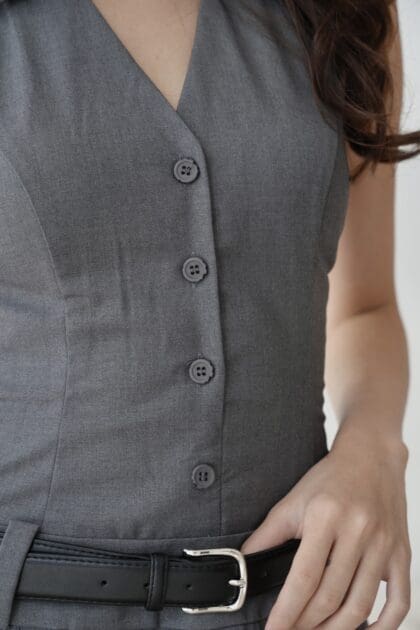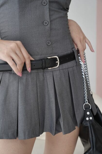 Made of cotton, No padding, Invisible zipper at the back, Stretchable at back, Halter neck V neckline design with button opening at front, Belt loop at low waist area, Pleated skirt design at bottom, Lining inside