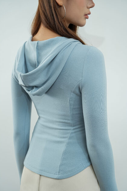 Made of Rayon fabric (very elastic), featuring two front pockets, slim-fit jacket with hood, zipper at front