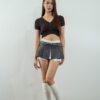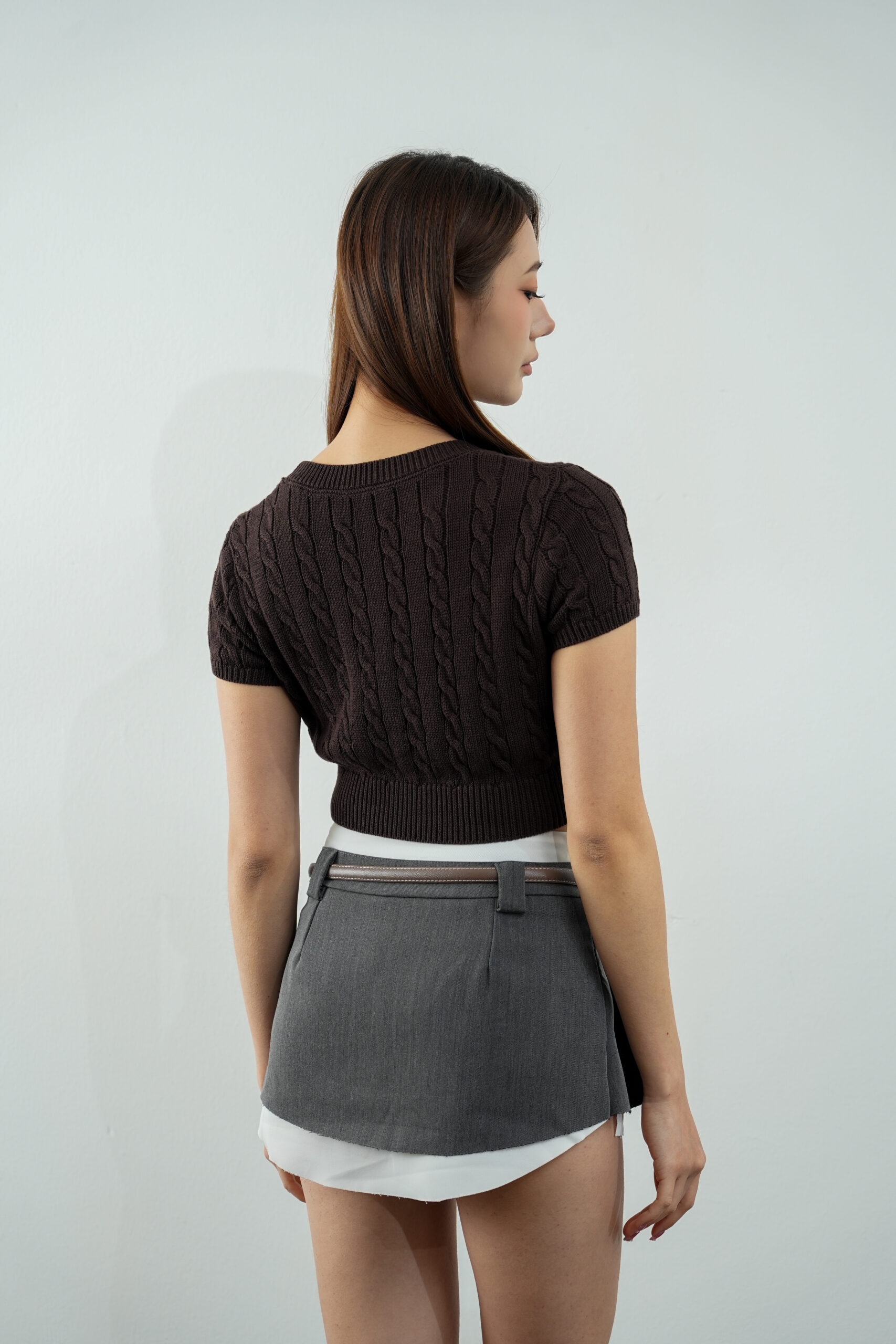 Made of polyester blend fabric, pleated design at front, featuring safety short inside, opening zipper at side, two belt loops at front and back