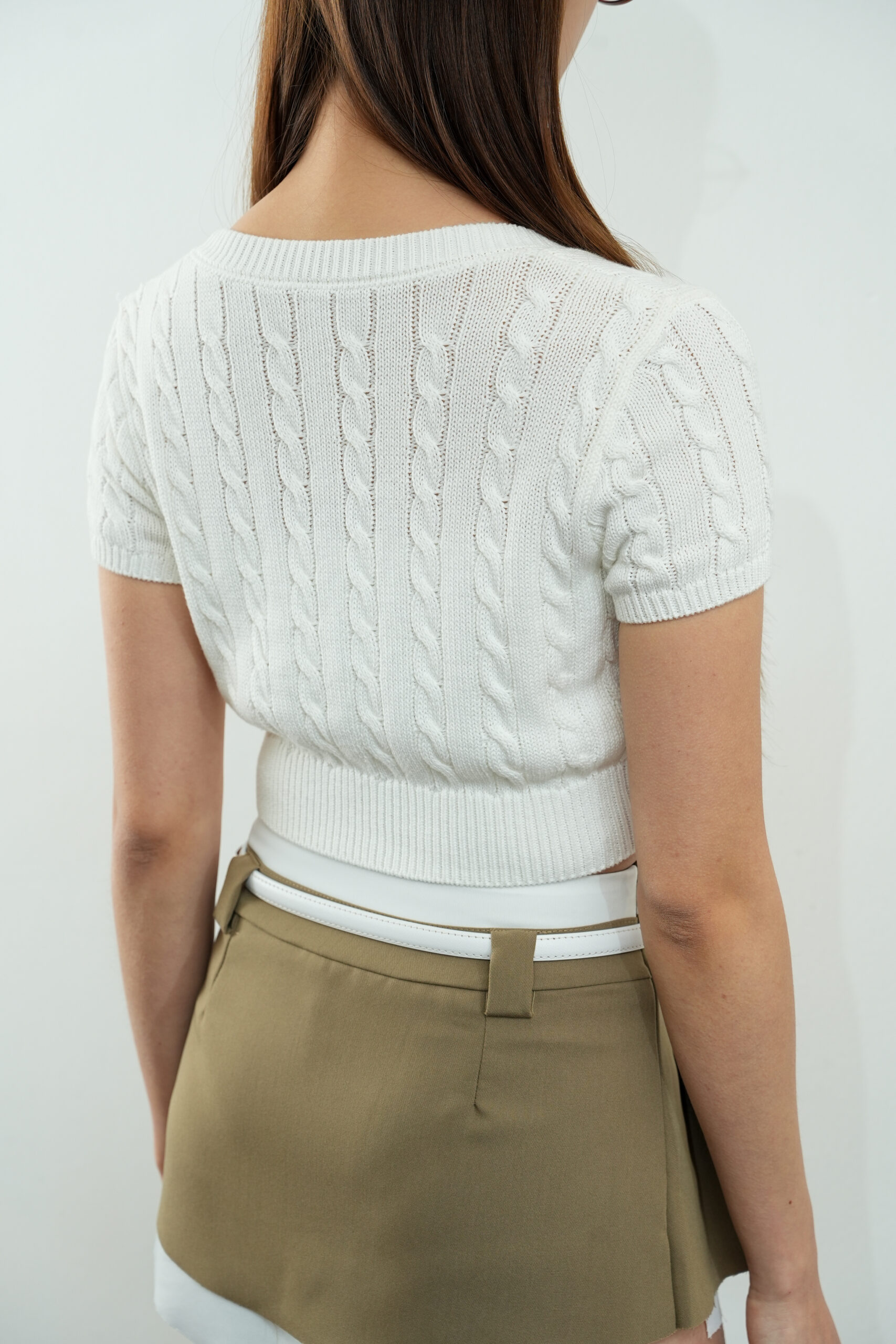 Made of polyester blend fabric, pleated design at front, featuring safety short inside, opening zipper at side, two belt loops at front and back