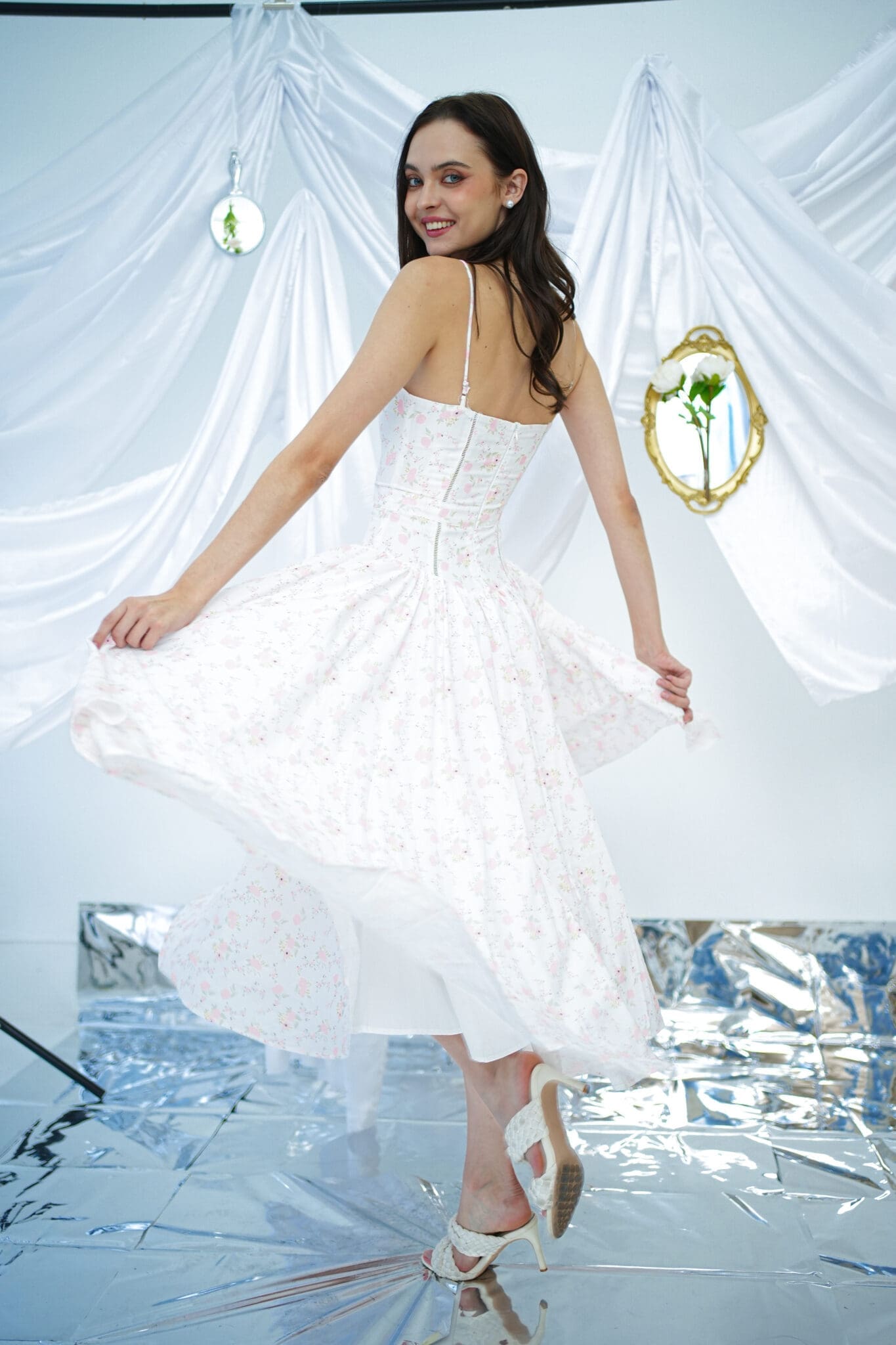 Made of cotton, Invisible zipper at the back, No padding, Adjustable strap, Hollow design at fishbone line front and back, Gather long dress design, Lining inside
