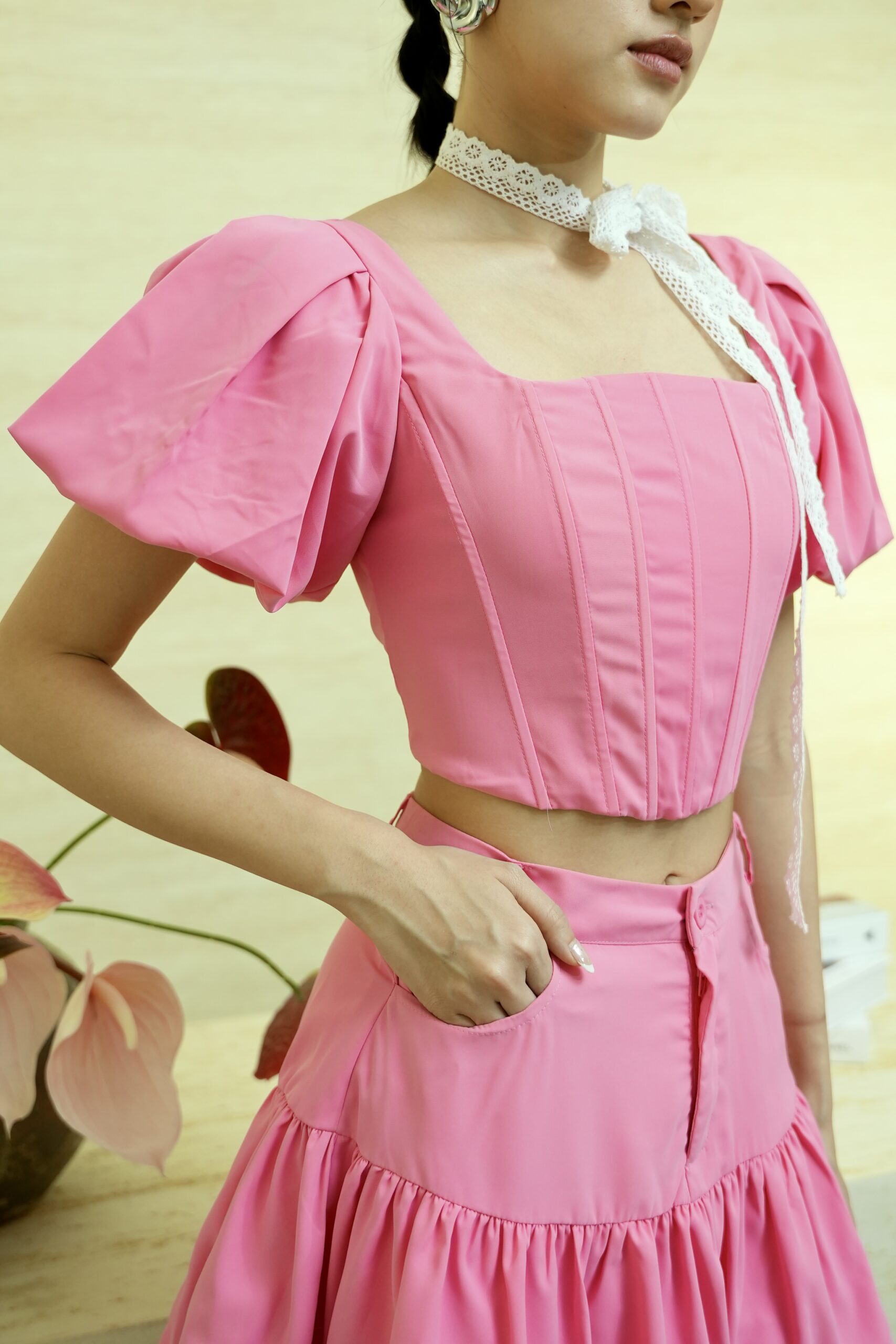 Made of poly cotton fabric , opening zipper at centre front, featuring two side pockets, featuring belt loops at waistband