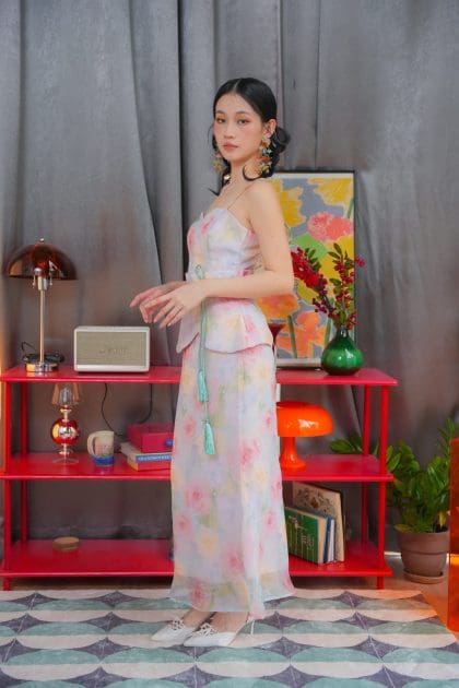 Made of organza, Invisible zipper at back, No pocket, Shorter lining inside