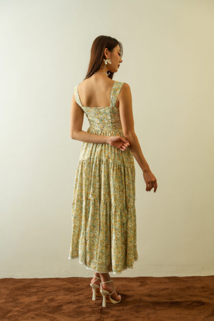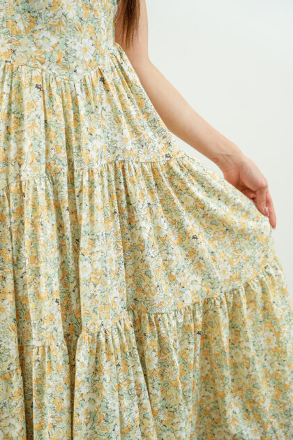 Made of printed nylon-viscose fabric, unadjustable shoulder straps, opening zipper at back, bust padding provided
