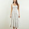 Made of cotton blend fabric, unadjustable shoulder straps, bust padding provided, tie knot strap design at front , opening zipper at back