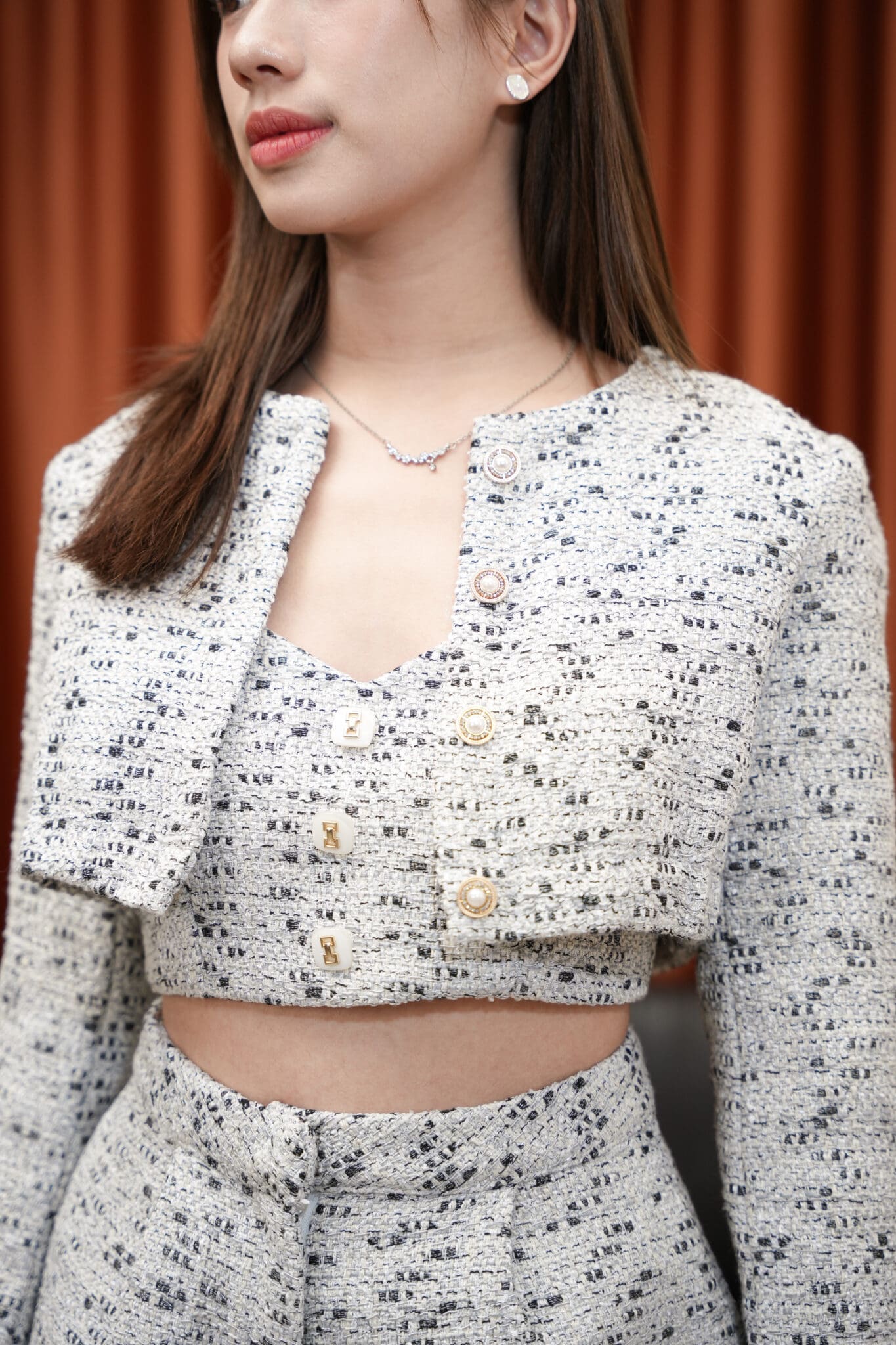 Made of Tweed, Non-stretchable, Front buttons opening, Breathable lining.