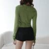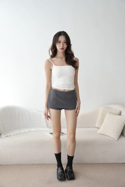 Made of cotton, Low waist skirt pant design, Invisible zipper at the back, Openable Invisible zipper at both side for pocket at pant, Fake welt pocket at back